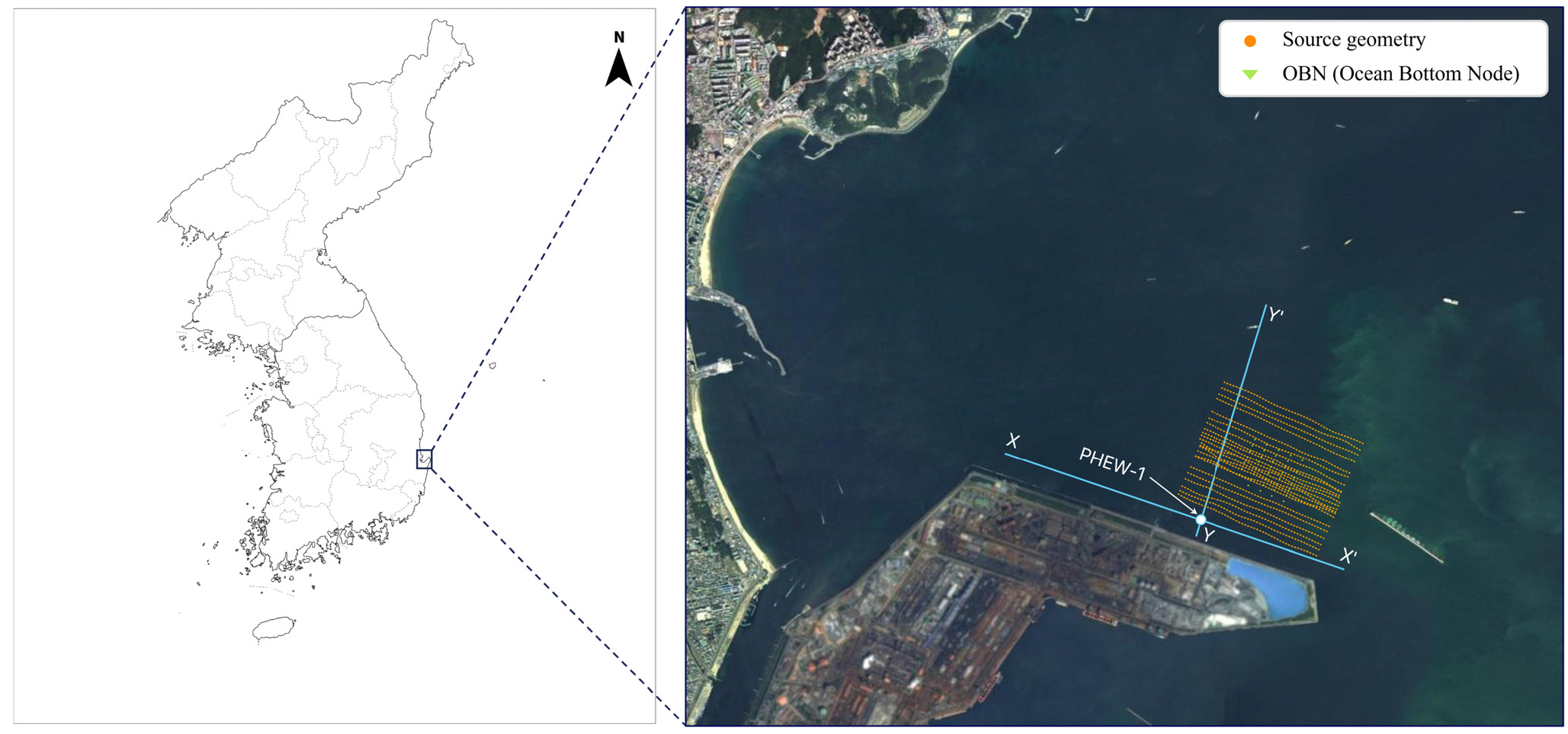 - Seismic data regularization is a critical step that improves the quality of subsequent data processing. We present a case study applying a deep learning (DL)–based regularization method using Delaunay tessellation proposed by Yeeh (2024) to small-scale, 3D ocean bottom node (OBN) data acquired from irregularly positioned sources in Yeongil Bay, Pohang. The DL model for regularization was trained solely on the preprocessed field data. We describe the data preprocessing and training data selection strategies used to enhance model performance. The trained DL model regularized the irregularly located source positions to a 10-meter spacing, which is denser than the originally acquired spacing of 25 -50 meters. Except for a few receiver nodes lacking nearby sources in near-offset regions where the curvature of arrival times varied, the main signals were well predicted. The results also effectively suppressed random noise. Because this method enables both the interpolation and regularization of irregularly acquired 3D seismic data using only field data, it is highly adaptable for future geophysical applications.